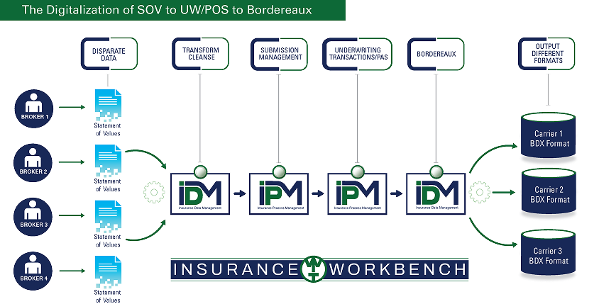 SOV records can be viewed and processed through Distributed Data Workbench (DDW), where they can be re-validated and rated. All records are accumulated based on rules, and multiple output bordereaux file formats are produced by DDW for external consumption.